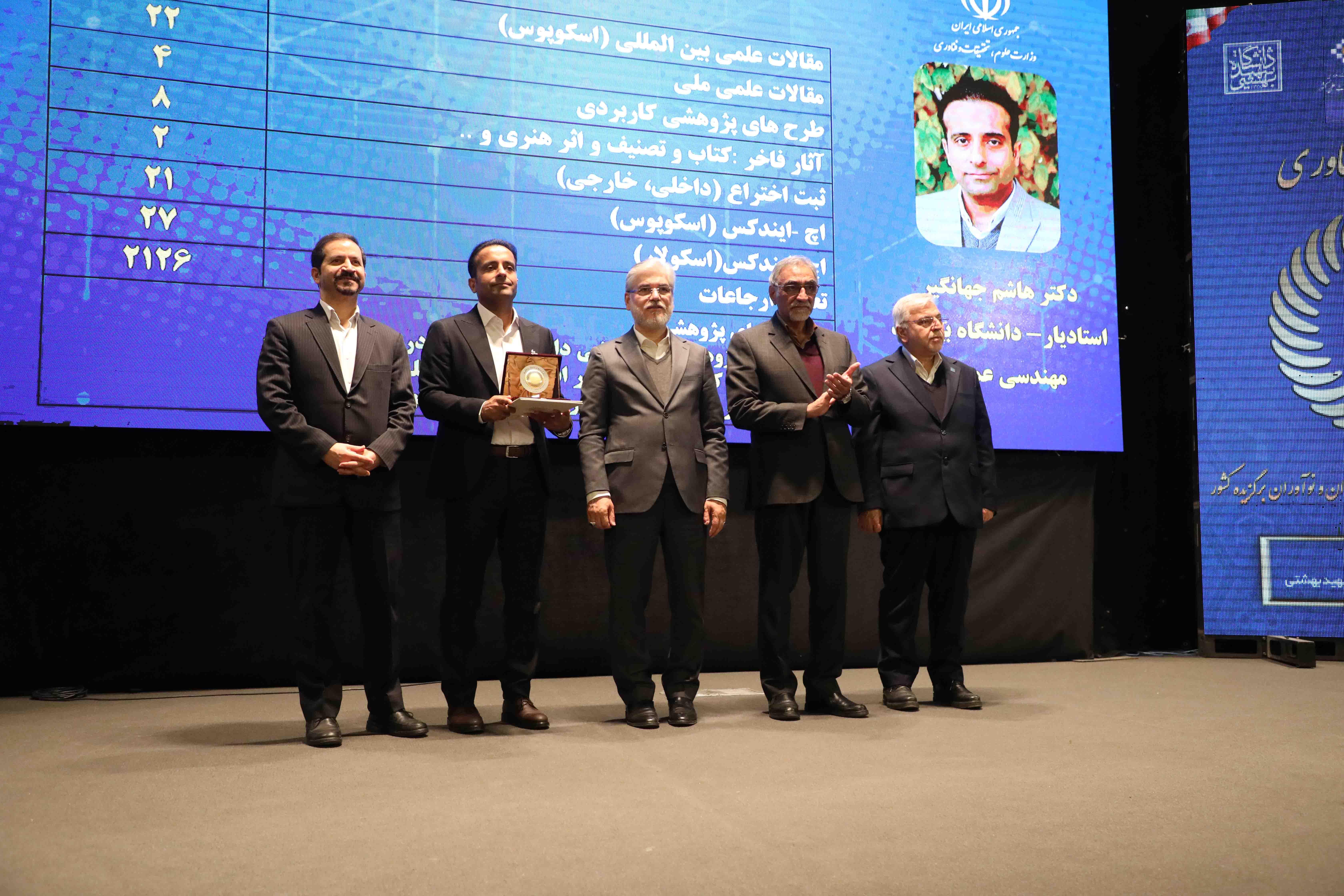 در این جشنواره ملی از دکتر هاشم جهانگیر، عضو هیأت علمی دانشگاه بیرجند بهعنوان پژوهشگر جوان برگزیده کشور در گروه فنی و مهندسی تقدیر به عمل آمد.
